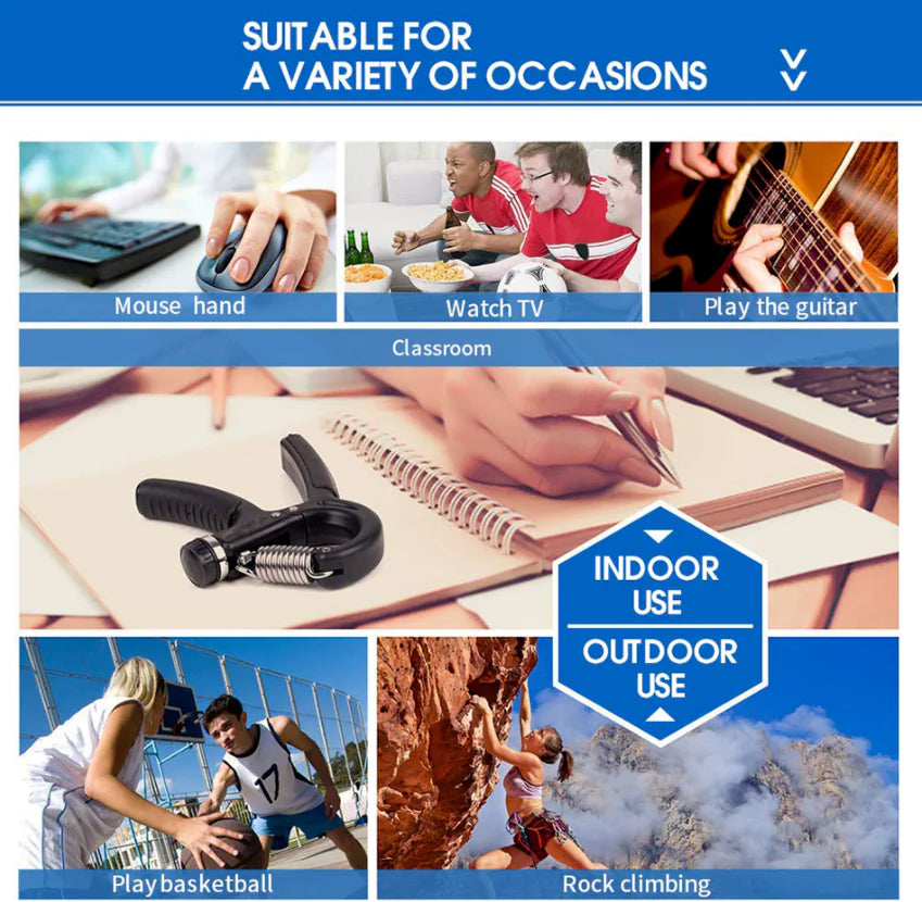 Enhance your grip strength and endurance with the PowerGrip Strength Trainer. Featuring an adjustable resistance range from 10 kg to 60 kg, this durable device is perfect for tailored workouts. Its ergonomic, anti-slip handles provide comfort during use, while the compact design ensures easy portability. Ideal for athletes, fitness enthusiasts, and rehabilitation exercises to improve hand, wrist, and forearm performance.
